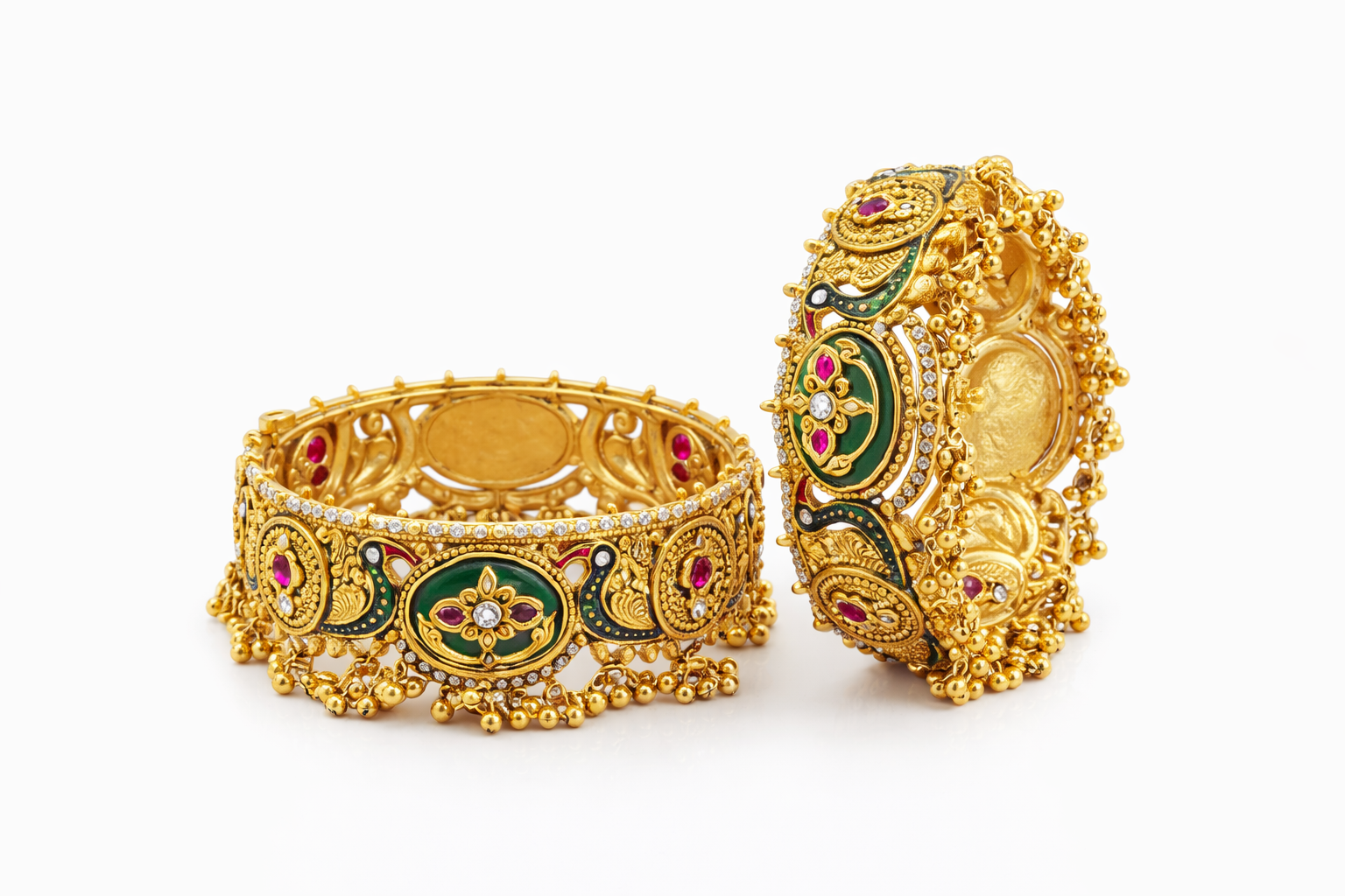Kundan Classic Bangles With...- ruby + green - AED 665.00