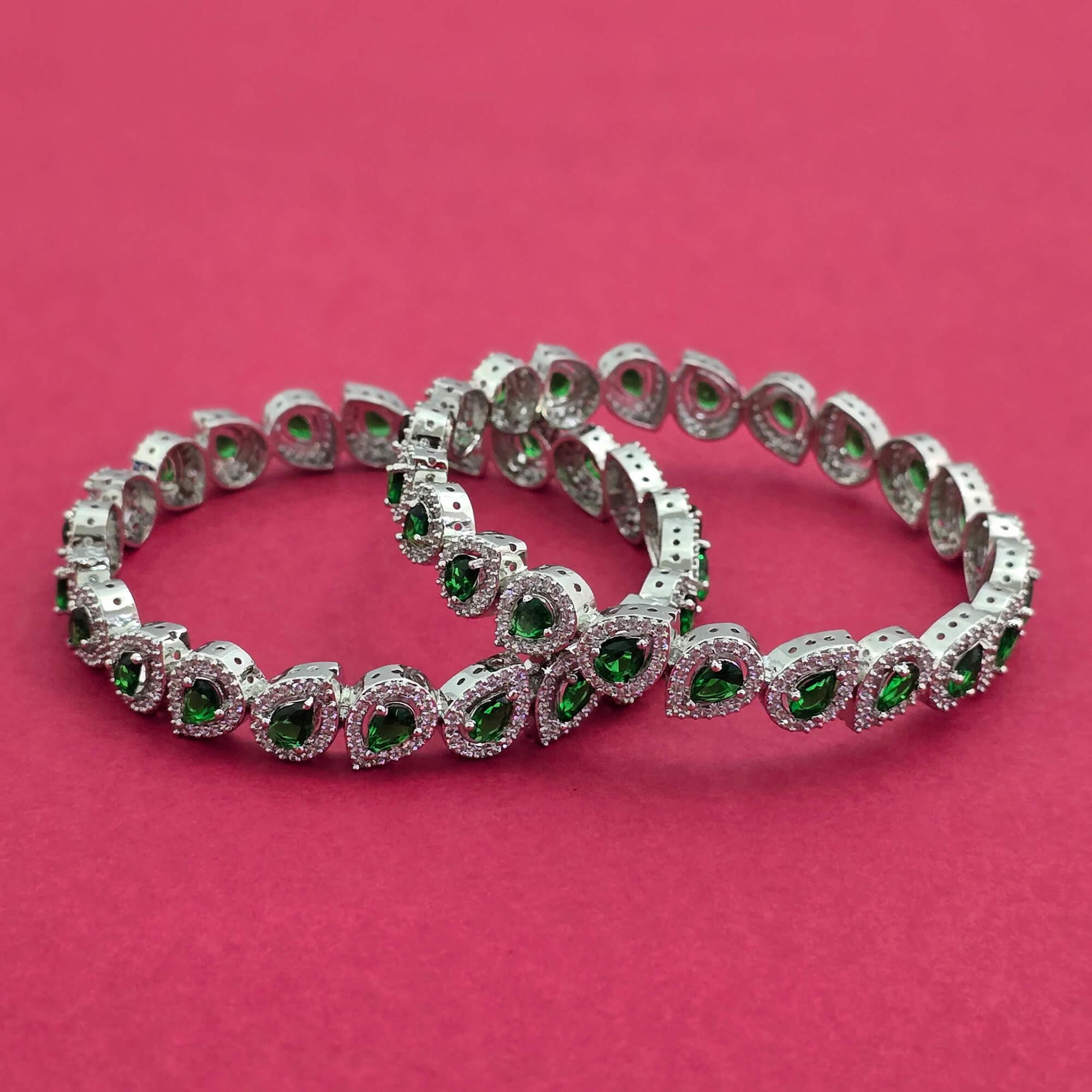 Cz Classic Bangles With Rhodium Plating - (2x6) || 439077