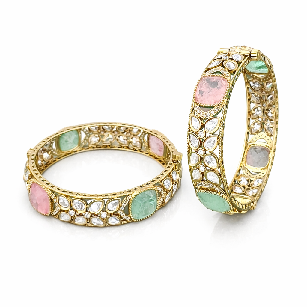 Kundan Openable Bangles With Mehndi Plating (2x6) || 303276
