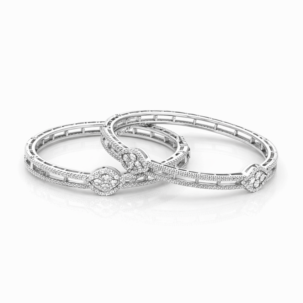 Cz Classic Bangles With Mehndi Rhodium Plating (2x6) || 442970