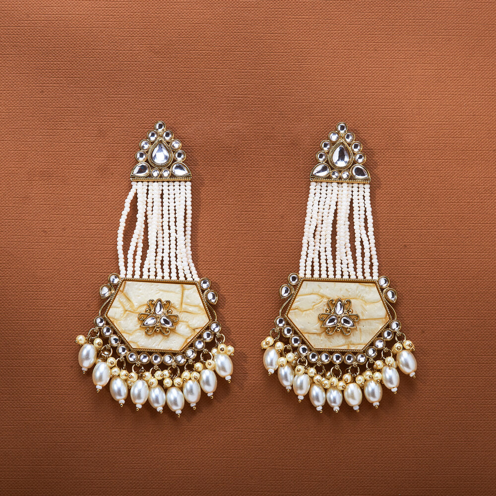 Indo Western Mother Of Pearl Earring With Mehndi Plating || 111802