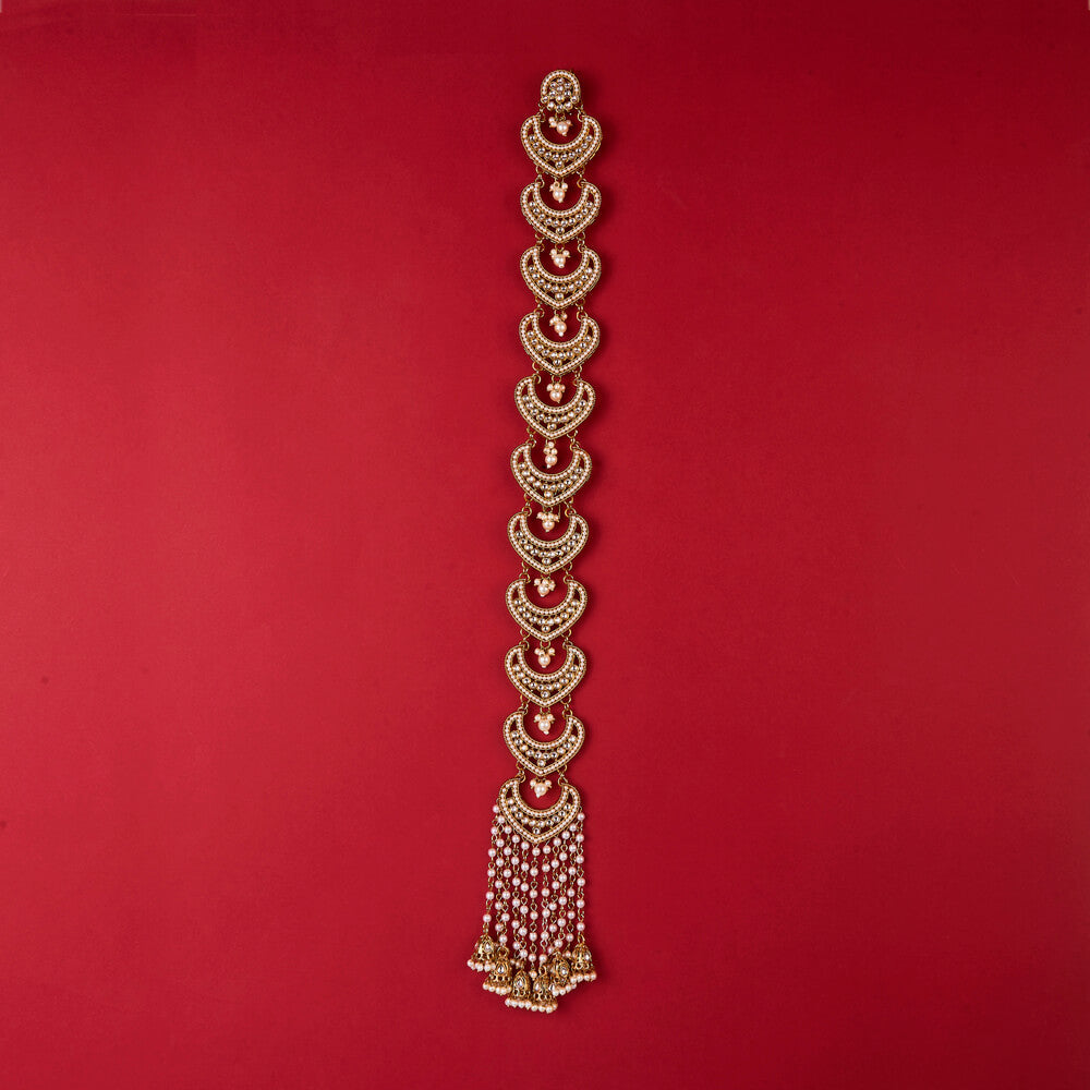 Indo Western Pearl Hair Brooch With Mehndi Plating || 112007