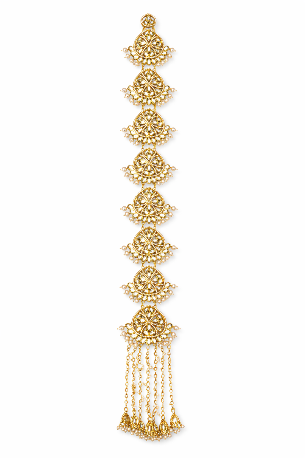Indo Western Pearl Hair Brooch With Mehndi Plating || 112059