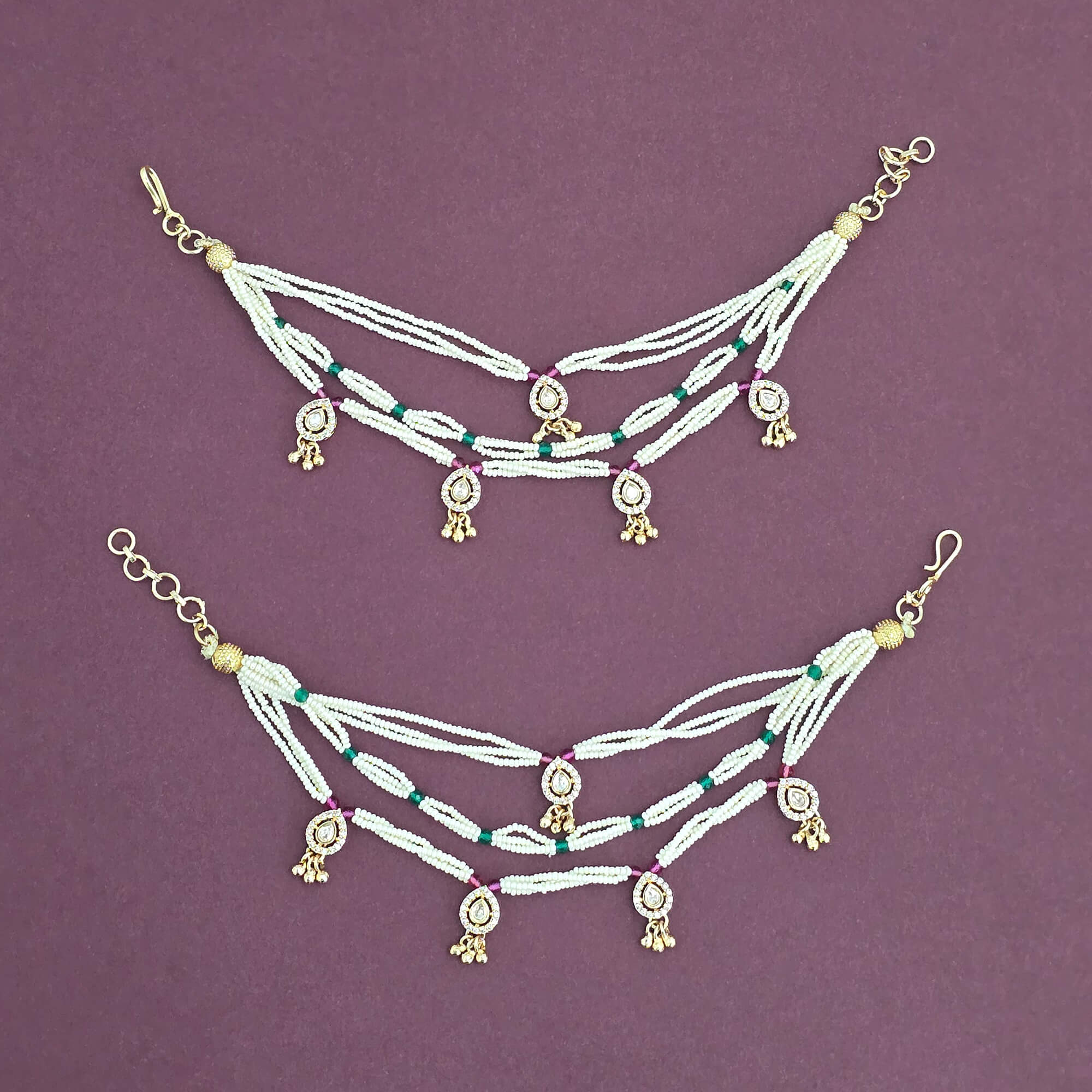 Kundan Moti Ear Chain With Carat Gold Plating || 303256