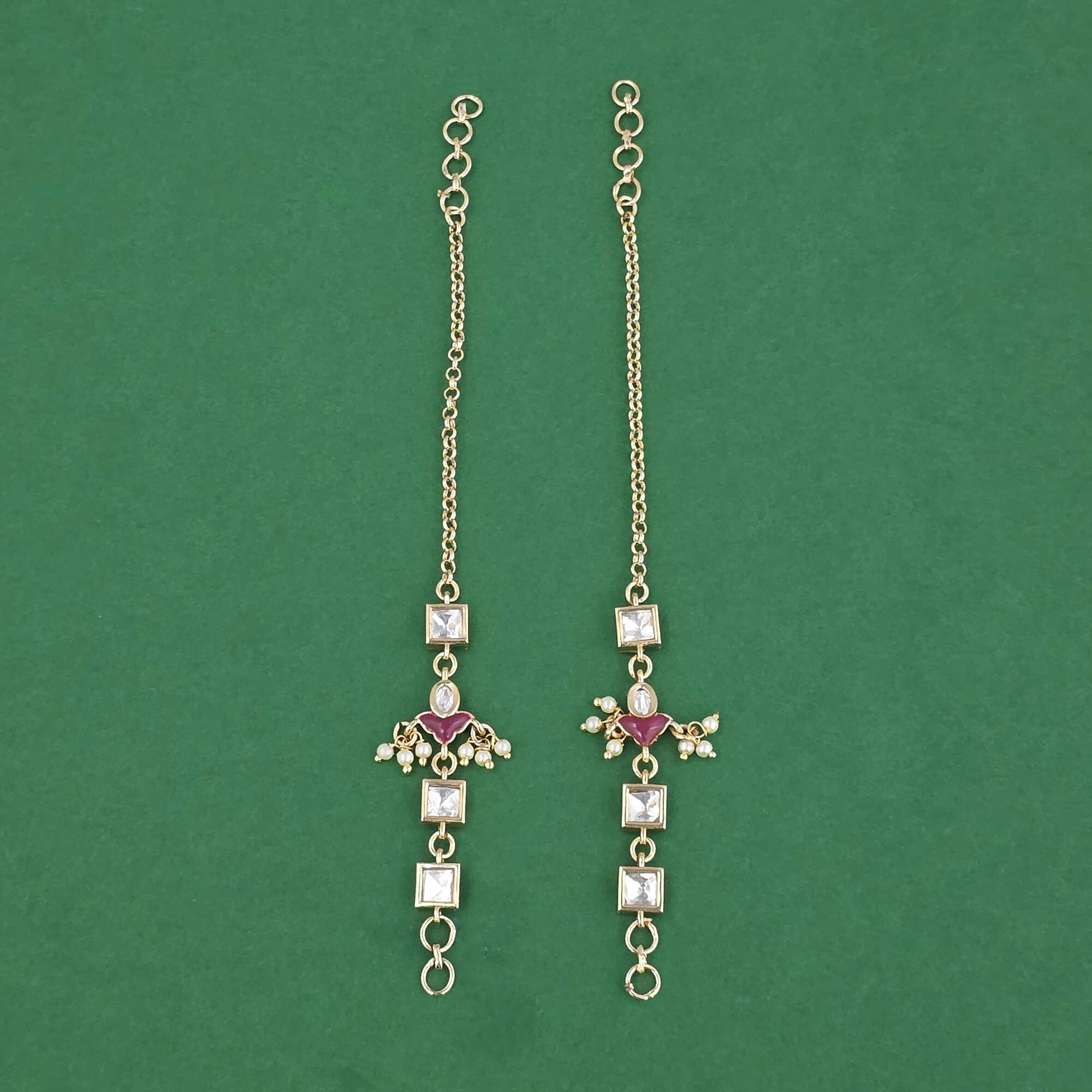 Kundan Moti Ear Chain With Carat Gold Plating || 303423